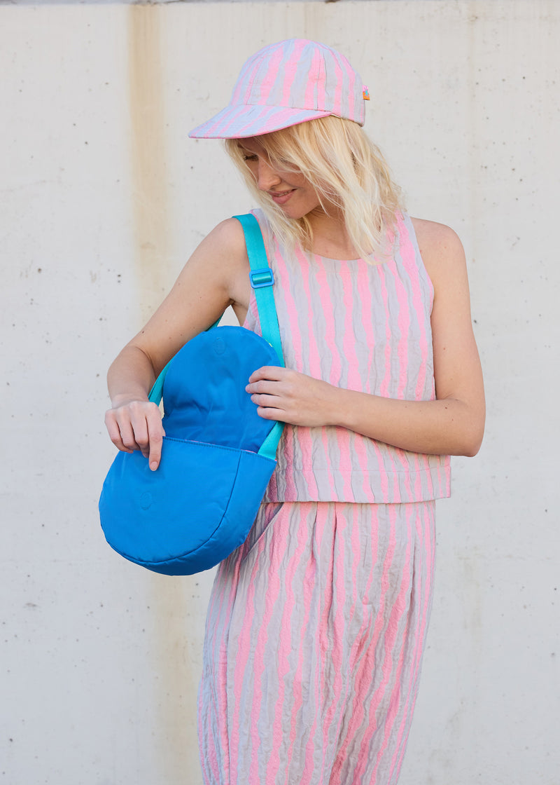 Micro stripe color block Saddle bag with magnetic front flap closure.